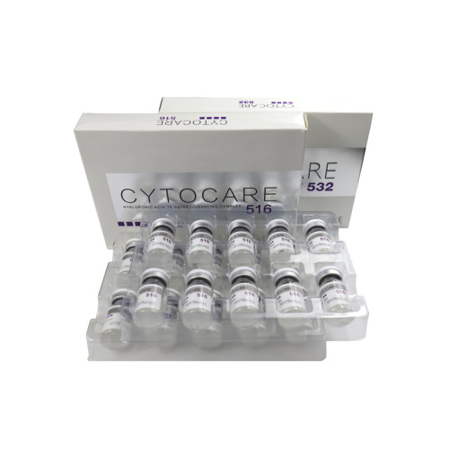 Cytocare®532は、ヒアルロン酸と若返り複合体で構成される吸収性のあるインプラントです。 Cytocare®532は、皮膚の老化プロセスと戦い、細い線としわを減らすために、皮膚真皮の中間層に注入されるように設計されています。 Cytocare®532は、皮膚の水和、調性、弾力性も回復し、輝きを改善します。