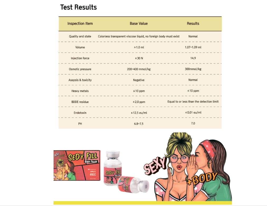 Sedy Fill 60ccは、主に体型の非外科的補正に使用する注射可能なボディフィラーです。それは、ユニークなヘンム技術を通じて生成される架橋ヒアルロン酸で構成されています。