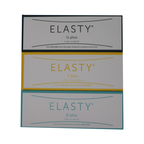 Elasty F Plus: Elasty F Plus is a medium viscosity dermal filler that effectively fills wrinkles and folds in the facial skin, acting on the deep dermal layers. Its hyaluronic acid is cross-linked using 3D technology, providing high volumetric properties and resistance to biodegradation. |